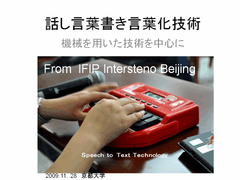 きょうは、北京会議で見たり聞いたりした話をご報告しようと思います。機械を使った技術を中心にスピーチ・トゥ・テキストテクノロジー、つまり話し言葉書き言葉化の状況についてお話しします。