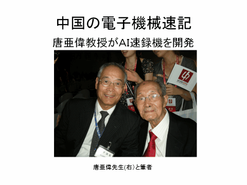 中国のAI速録機は右側の唐亜偉(とう・あい)先生が開発されました。