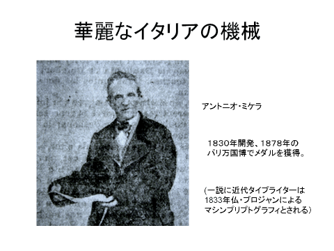 1830年にイタリアのアントニオ・ミケラさんが発明して、1878年にパリ万国博でメダルを獲得しています。