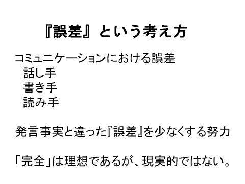 誤差の原因は、話し手、書き手、読み手三者にあります。