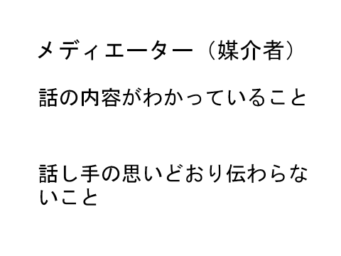 よいメディエーターは、話の内容がよくわかっている場合、すばらしい要約筆記をしてくれます。しかし、よく知らない人の場合、話し手の思いどおり伝えることができないものです。