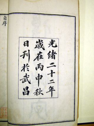 発行年が光緒22年(1896年)と書かれている。(右ページ) 〔関西大学総合図書館蔵〕