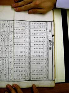 傳音快字の記号表。左のページは子音、右のページは母音が書かれている