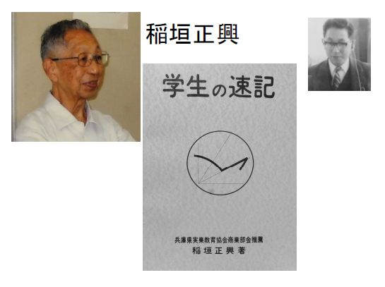 こういうお写真が手元に残っております。稲垣先生もこういう真ん中の『学生の速記』という非常に学びやすい簡潔な、そして、高速度競技で一番になるくらいのスピードが出る速記符号を中根式で完成されていらっしゃいました。