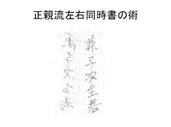 それからこれが、正親先生と私が初めてお会いしたときに、鉛筆を両手で持たれて「兼子次生君」と同時に両手で書かれたんです。
