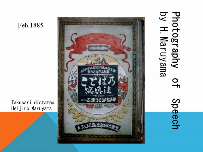 Takusari dictated to Heijiro Maruyama his first Stenography book and published in 1885.
