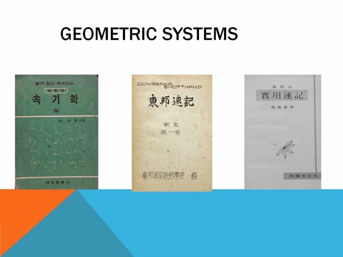 In Hangul Stenography, Geometric theory was the main stream influenced from Japan.