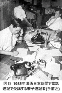 国会開設の詔勅が下りて若林玵蔵、酒井昇造らは第一回の帝国議会の速記を実現するために、後進の育成、高速度の逐語型速記技術の錬磨に全力を注いだ。いち早く、新聞業界では熾烈な部数競争に勝つべく、全国主要拠点での速報体制を整えようとして送稿手段に速記を採用する少し前の時代であった。ちなみに電話速記時代を開く東京−大阪間の長距離電話の開通は明治32(1899)年2月7日である。