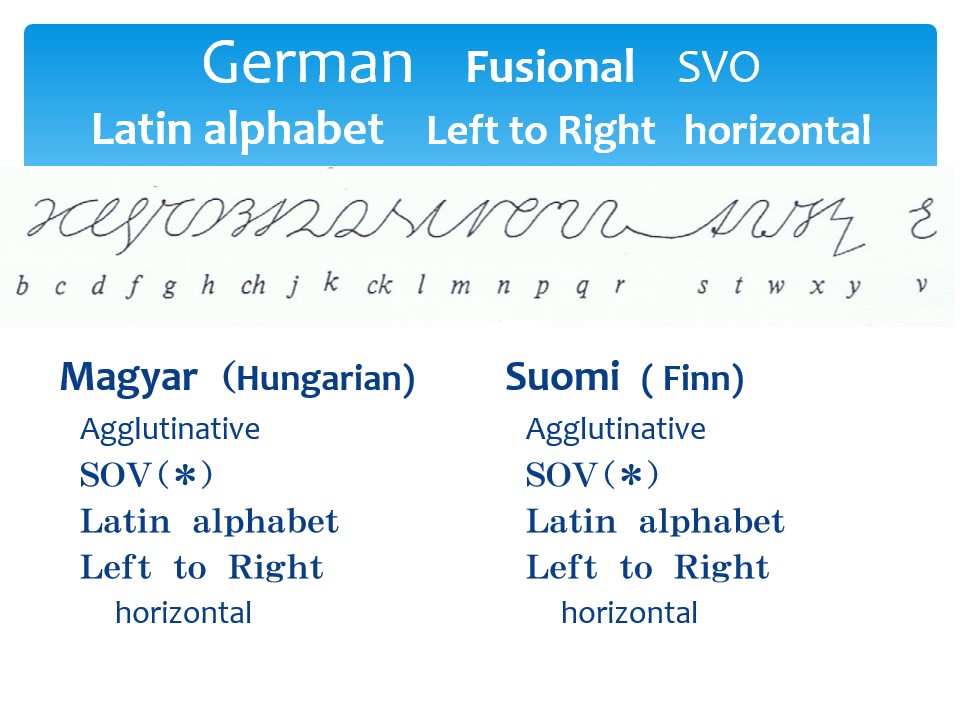 German cursive theory applied in Agglutinative language, SOV word-order languages.