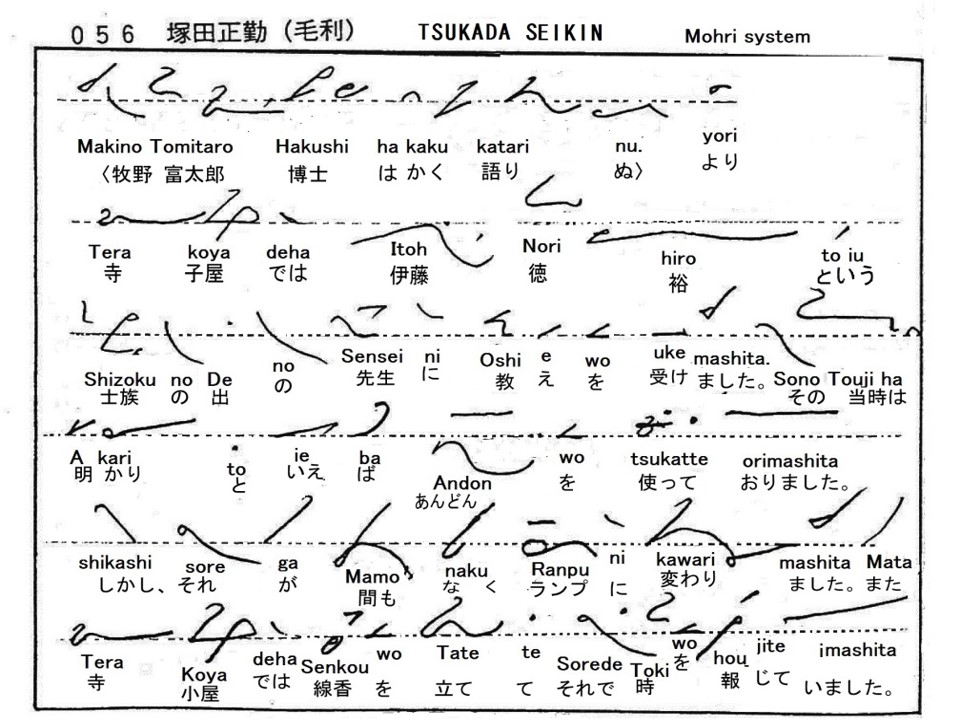 Mohri designed consonants and vowels by line strokes. Also he created the method to reduce the load to write vowels.