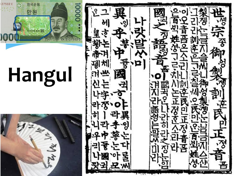 Korea is only one country that succeeded to enforce and firmly established the artificial phonogram “Hangul” in the World.
